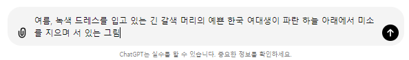 위의 텍스트를 ChatGPT에 입력하면, AI는 이 요청을 이해하고 예쁜 여자의 그림을 생성합니다. 이때, 생성된 그림의 품질은 프롬프트의 구체성에 따라 달라질 수 있습니다.